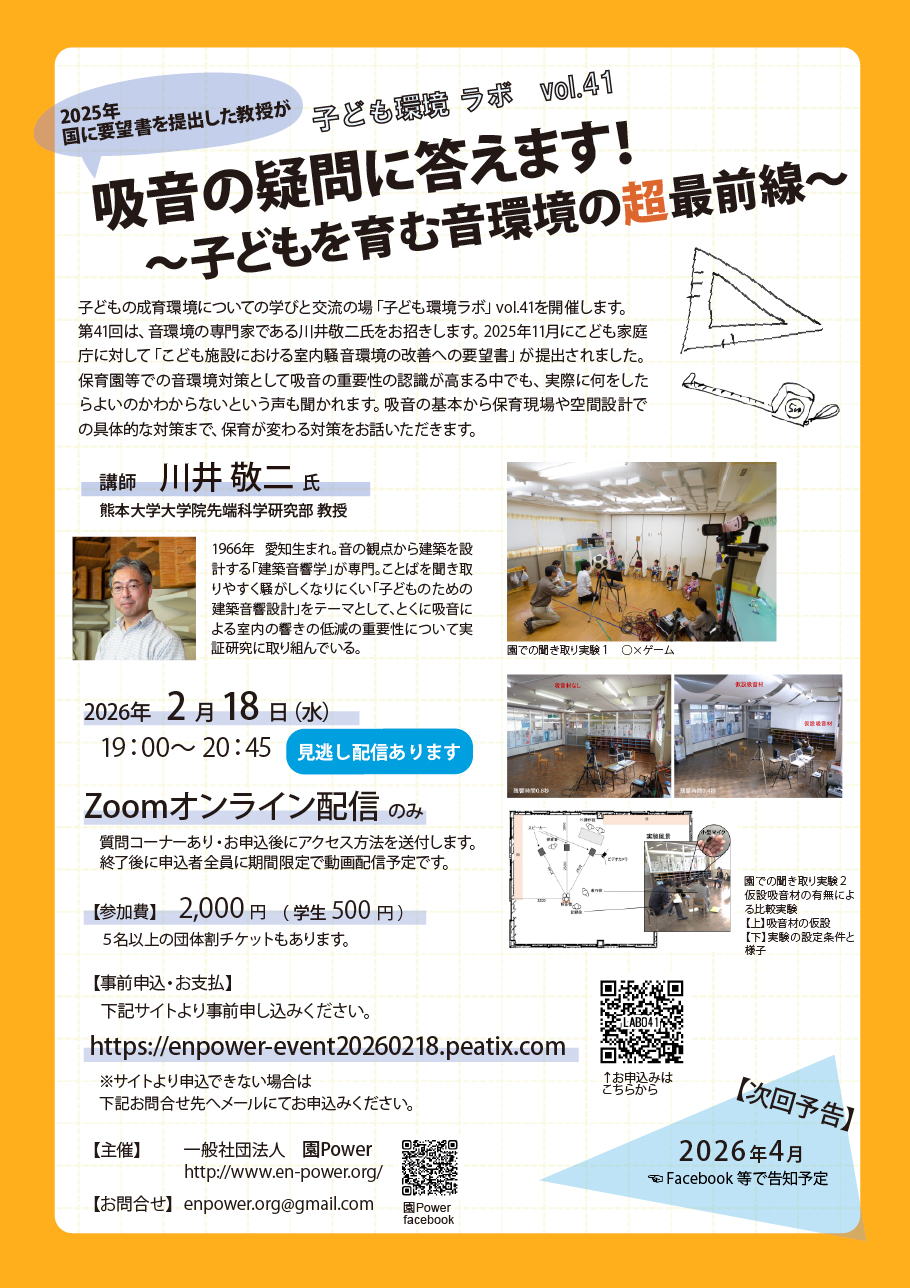 「吸音の疑問に答えます!〜子どもを育む音環境の超・最前線〜」